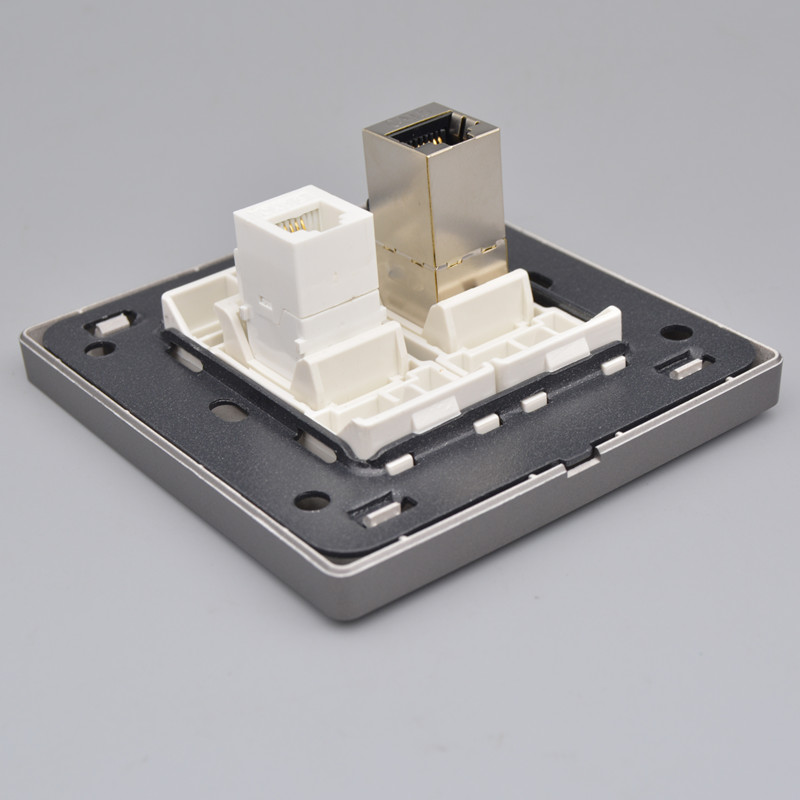 Gray six straight-through shielded cable oral phone socket dual-mouth computer straight-mouth gigabit network voice panel