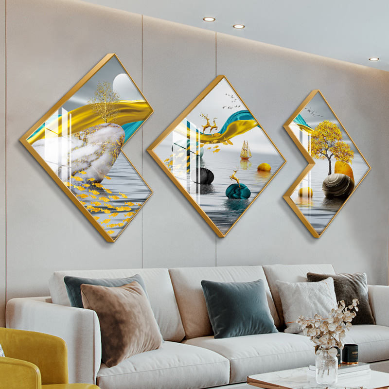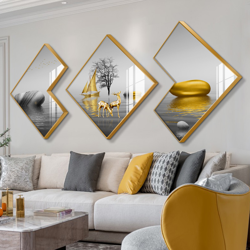 Nordic Light Lavish Living Room Decoration Painting Stone To Run Polygon Sofa Background Wall Hanging Painting Modern Dining Room Wall Painting