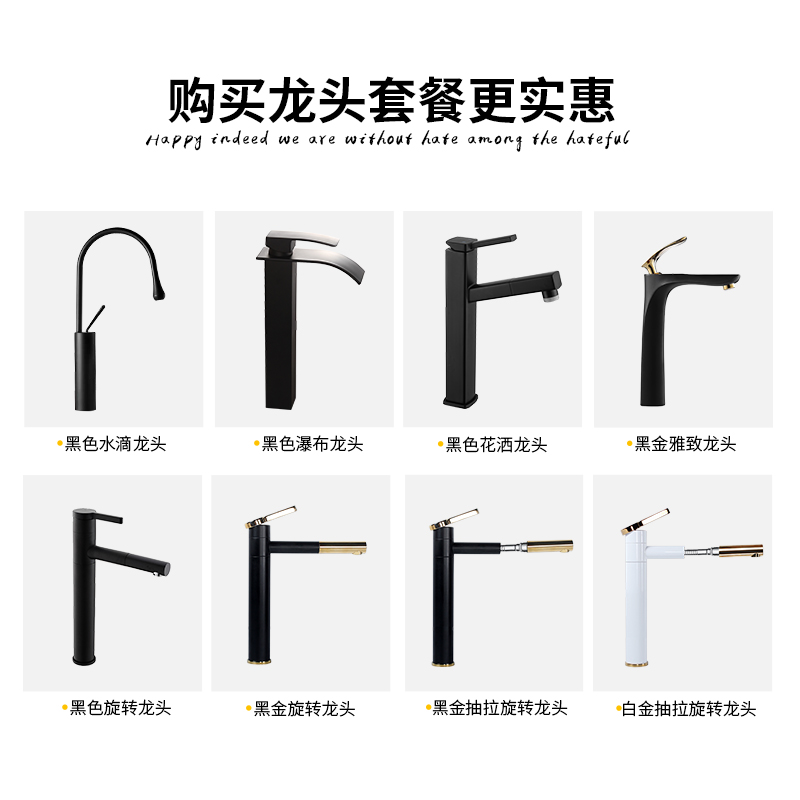 Single sink Gift Sewer accessories cover Single sink Black Gold Rotary Tap Package (white gold single sink with black gold Jacogenic faucet package (platinum single sink with black waterfall faucet package single sink with black gold rotary pumping
