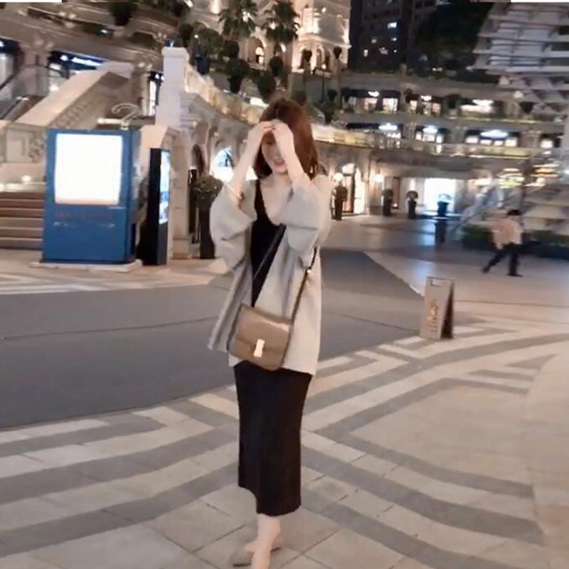 Apricot white knitwear coffee color hanging band dress S apricot white knitwear coffee color hanging band dress M apricot white knitwear coffee color hanging band skirt L apricot white knitwear coffee color hanging strap skirt X