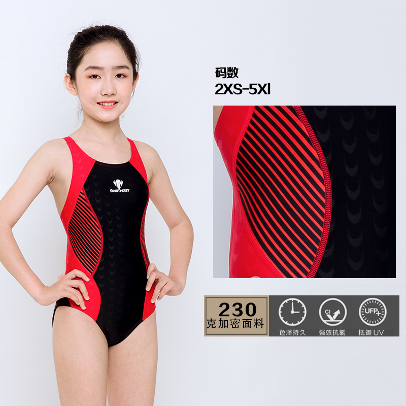 Children's women's professional training swimsuit girl among girls speed dry shark leather Triangle conjoined race Grand Tong swimsuit-Taobao