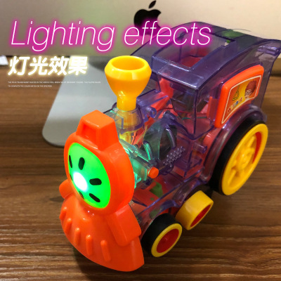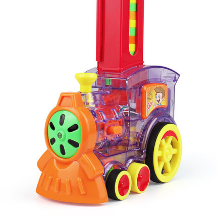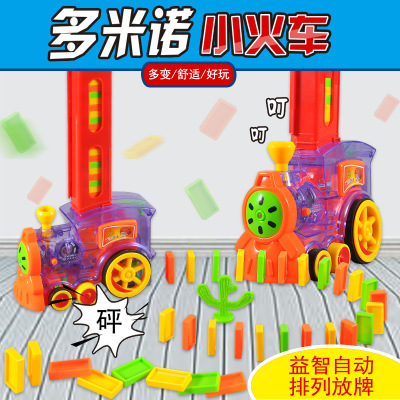Domino train children's educational toys 3-6 years old 5 automatic licensing car electric placing building blocks game