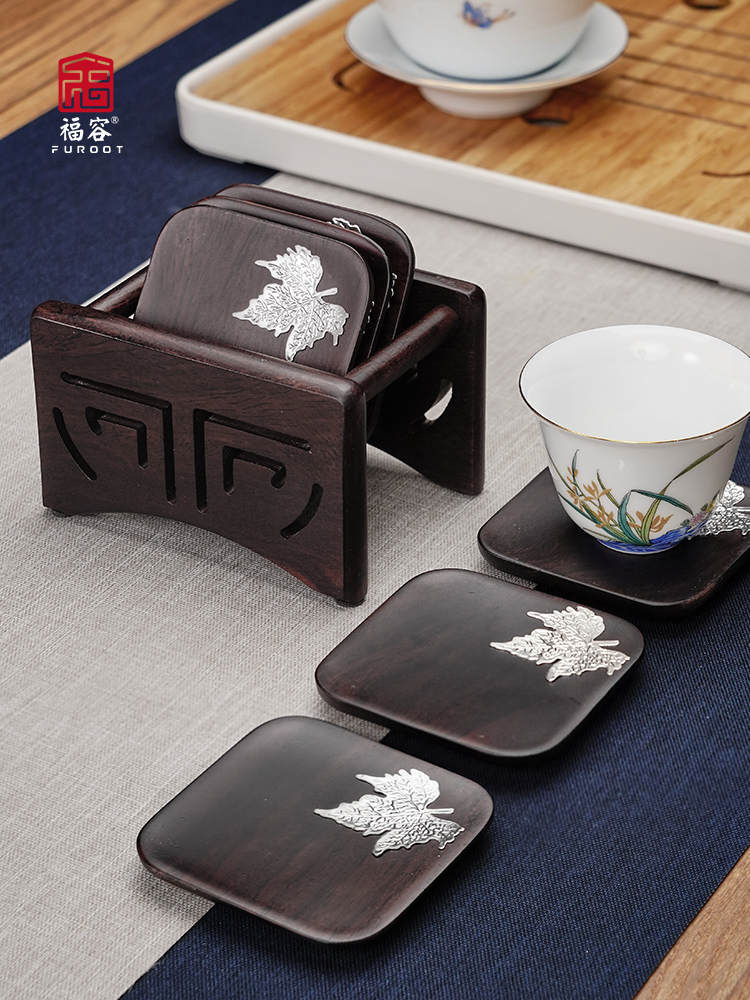 Black Sandalwood Cup Mat Insulation Mat Wood Cup Mat Solid Wood Tea Cup Mat Tea Set Accessories Tea Dau Zen Tea Cup Nursery