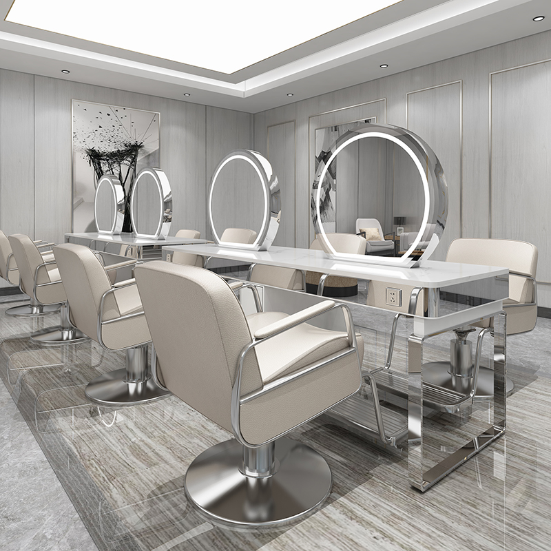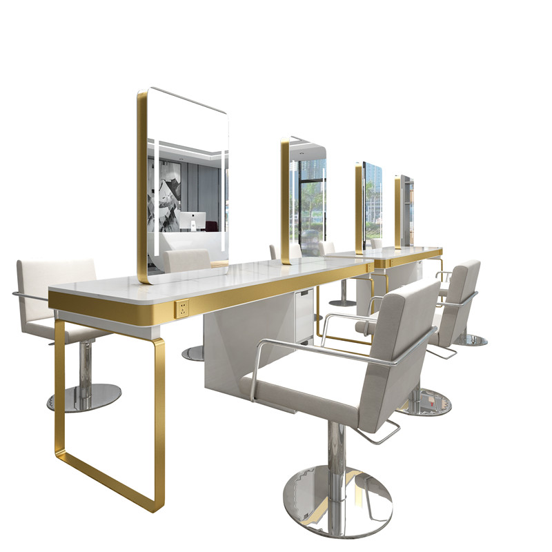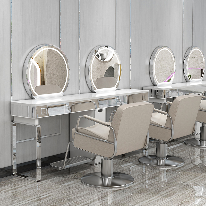 New barbershop special mirror desk hair salon hair double-sided mirror table net red with cabinet simple with lamp perm mirror table
