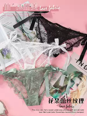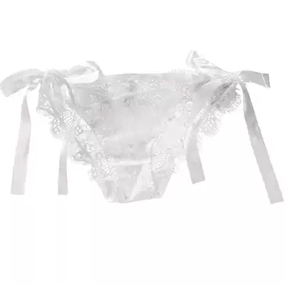 Transparent mesh low-waisted panties female sexy temptation lace-up strap girly hollow lace breathable Lady breifs