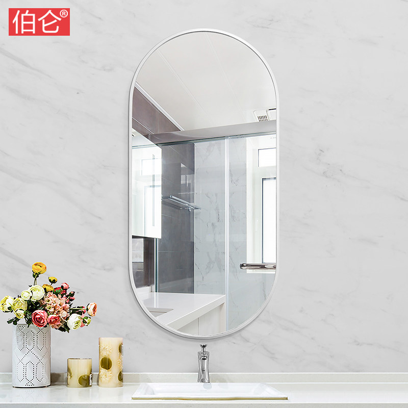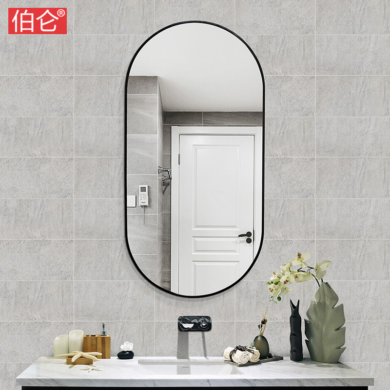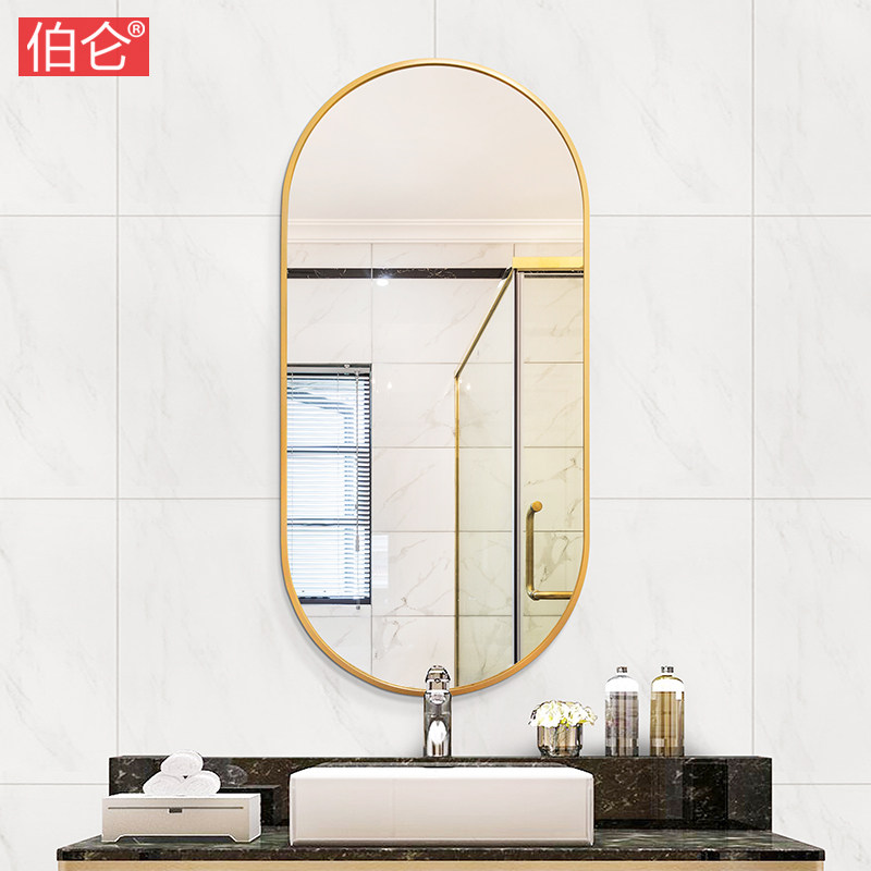 Burun Nordic light luxury bathroom mirror wall hanging brass gold powder room mirror oval explosion-proof makeup mirror wall hanging