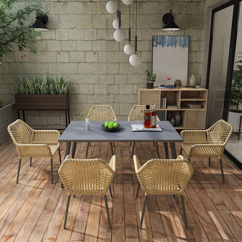 Rattan outdoor patio garden telescopic table and chairs combination original wood grain color terrace outdoor casual aluminum alloy imitation rattan chair-Taobao