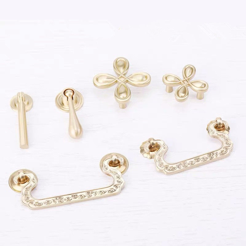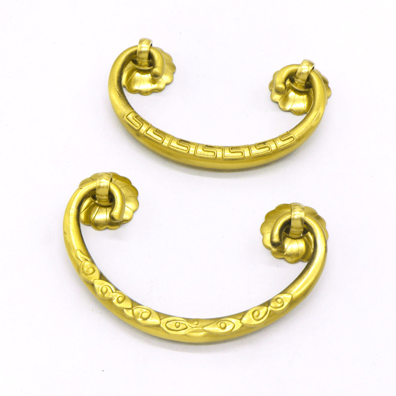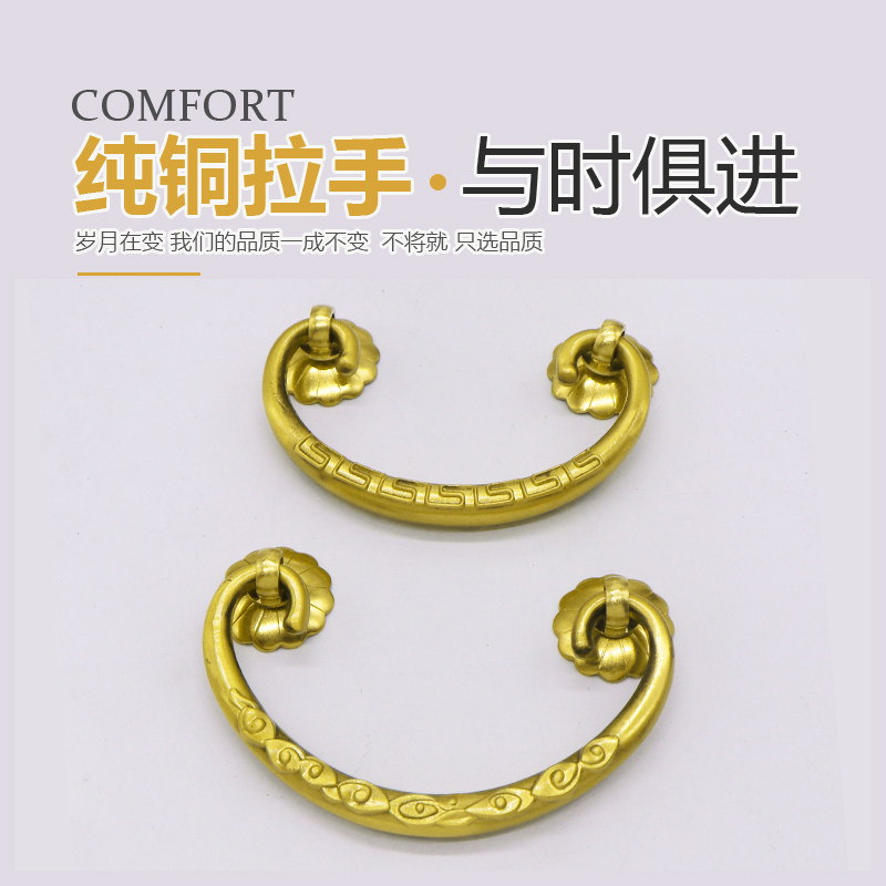 New Chinese-style all-copper surface-mounted modern minimalist handle cabinet door drawer pure copper solid engraved golden brass handle