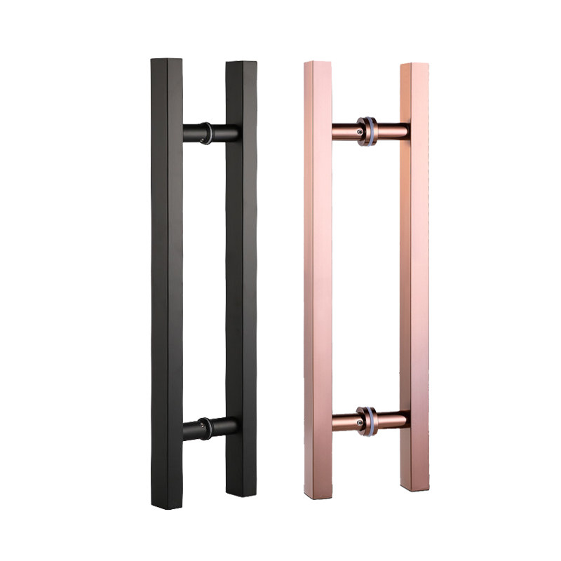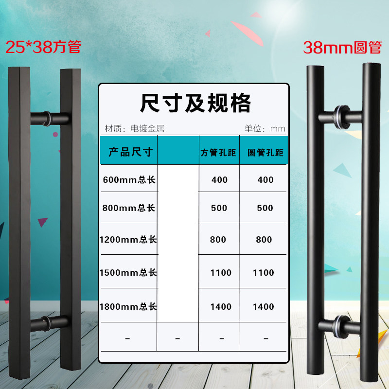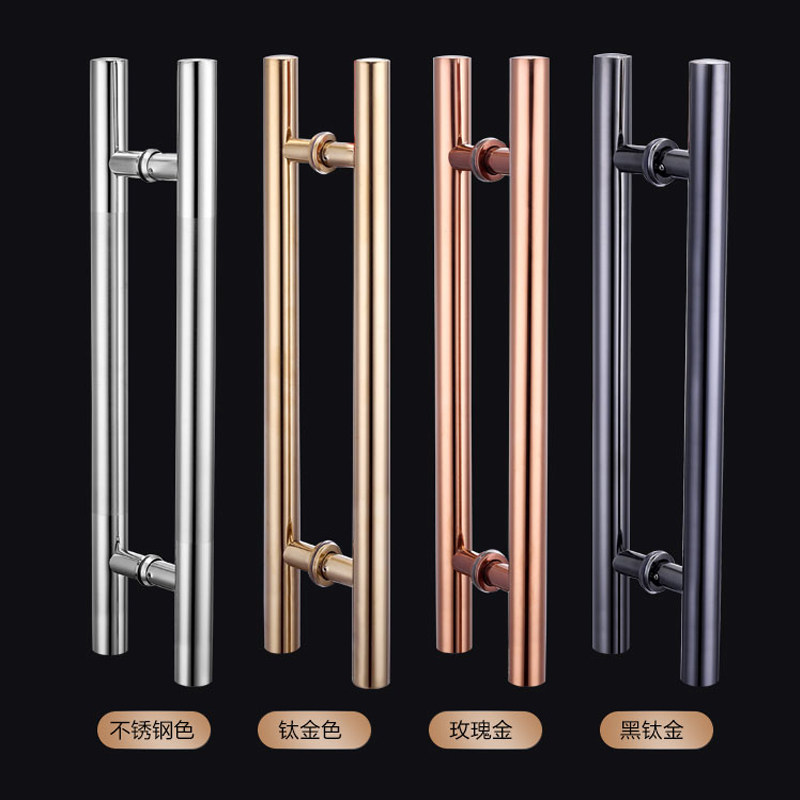 Glass door handle black titanium alloy round tube thickened 304 stainless steel shop clothing store push-pull paired door handle