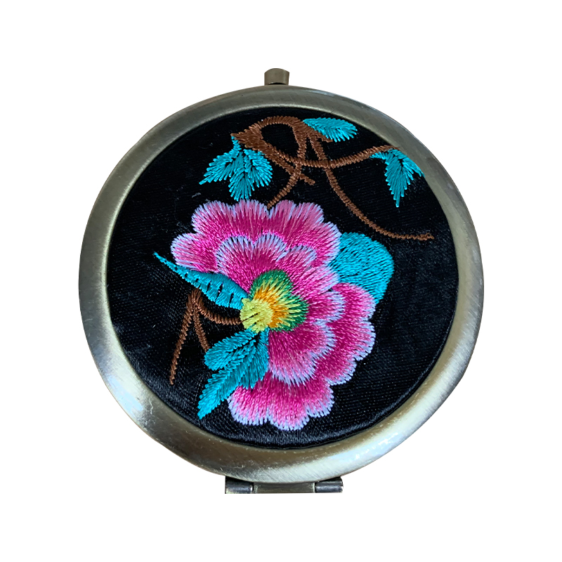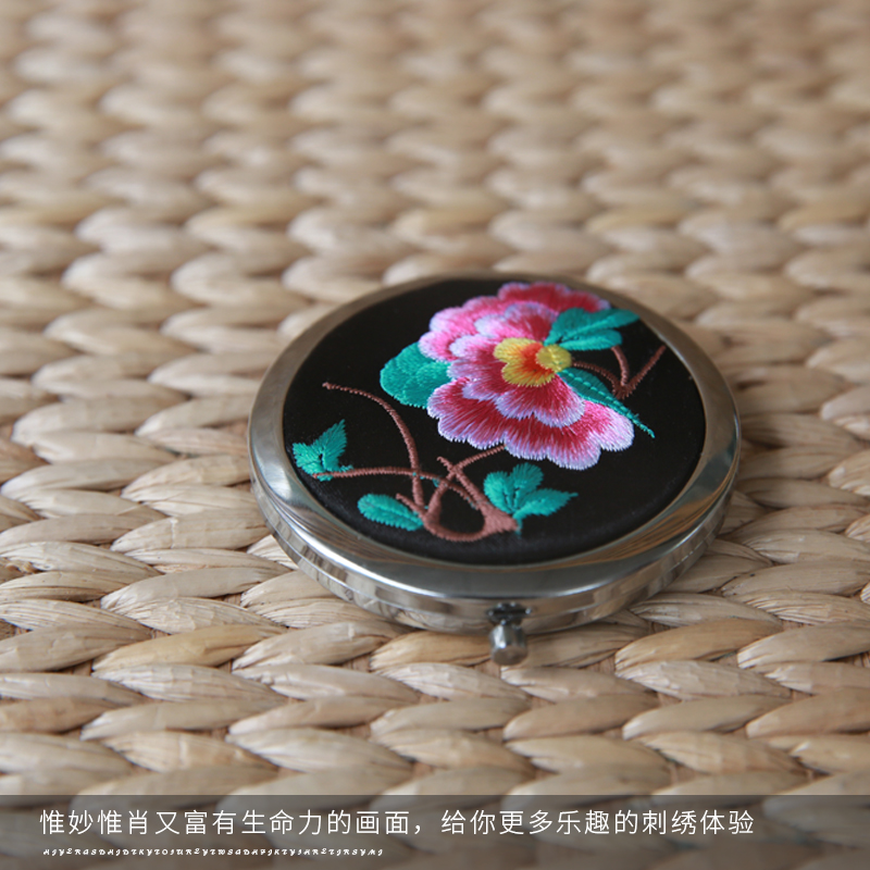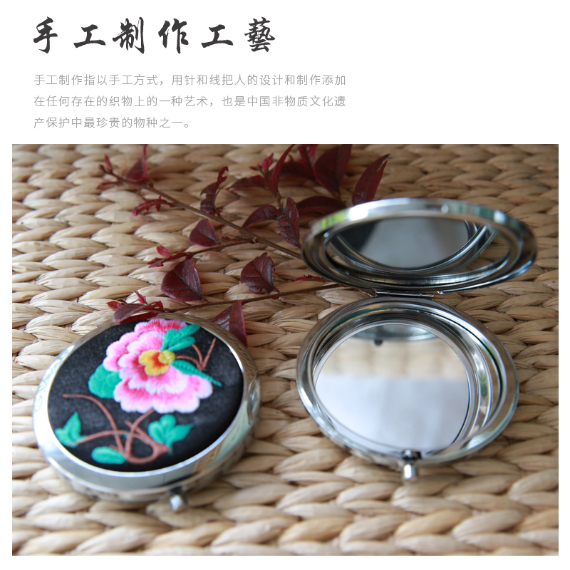 Xiangxi Seven Embroidery Workshop Embroidered Makeup Mirror Portable Cosmetic Mirror Handheld Folding Mesh Red Trumpet Student Dormitory Bifacial Mirror