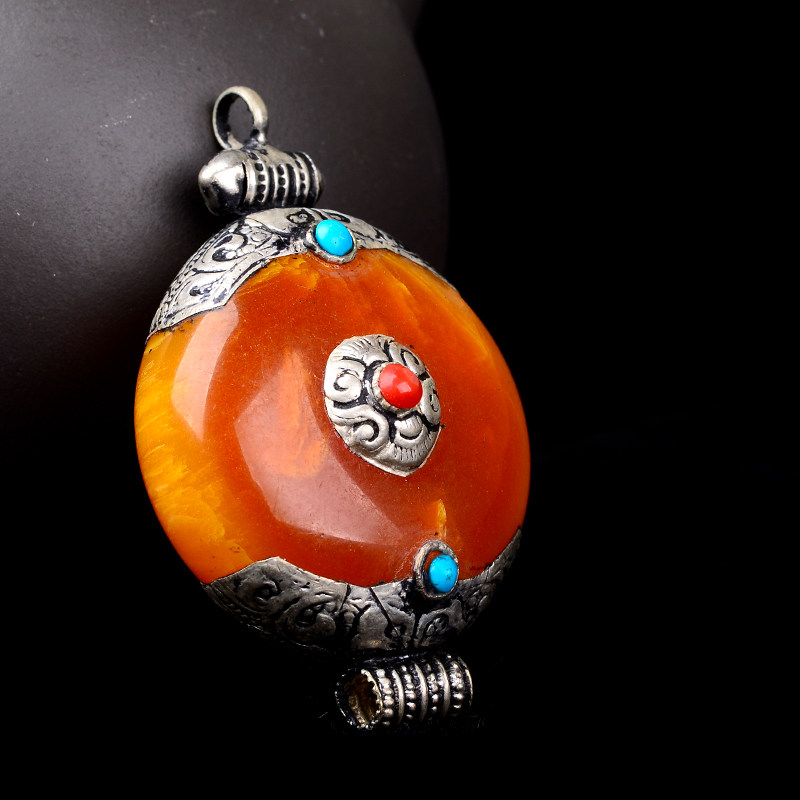 Tibetan Nepalese ethnic jewelry Bohemian Tibetan silver imitation old beeswax pendant for men and women