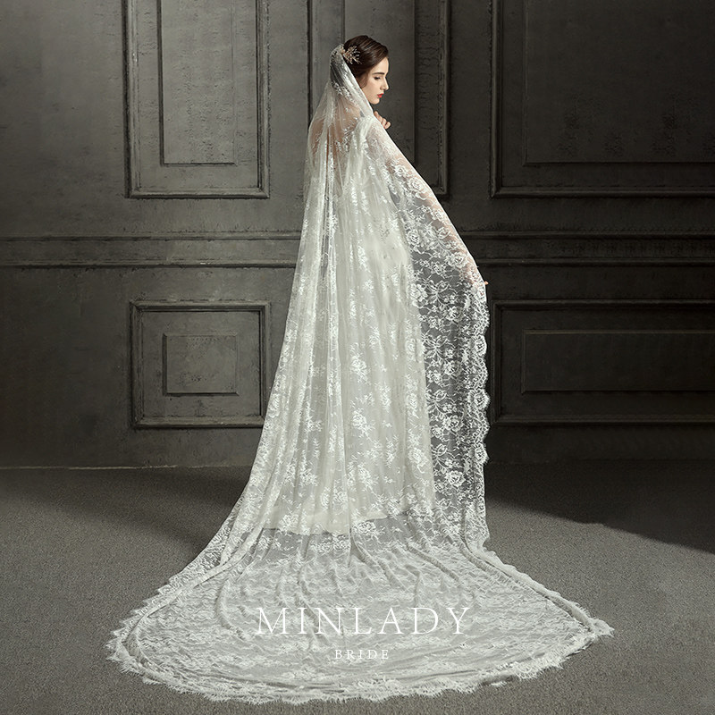 Famous-4m-head yarn wedding dress main wedding dress 2022 new brides wedding accessories lace Herbbon Wind retro elegance