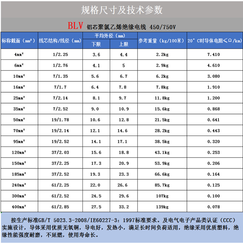 Sail Cable BLV Aluminum Core Wire 25 25 35 50 70 70 Squared National Standard Outdoor Line Aging 100 m