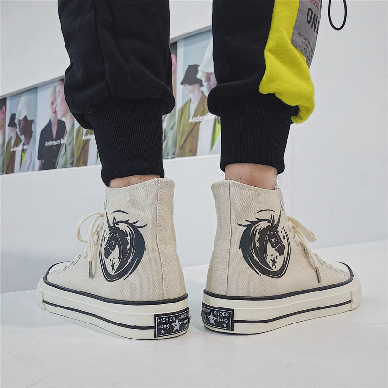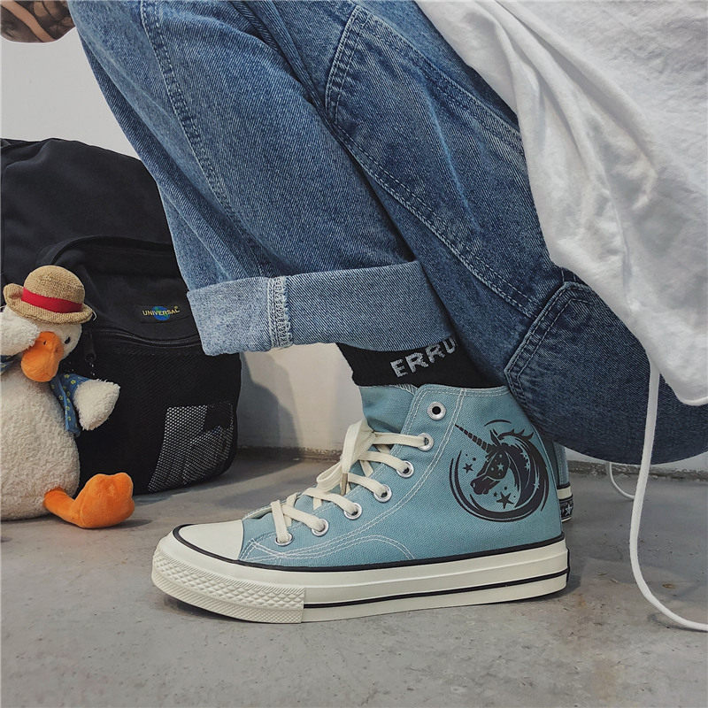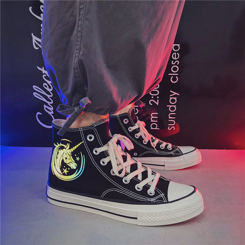 2021 spring new high-top shoes reflective canvas shoes men's trendy student men's shoes unicorn graffiti shoes casual shoes