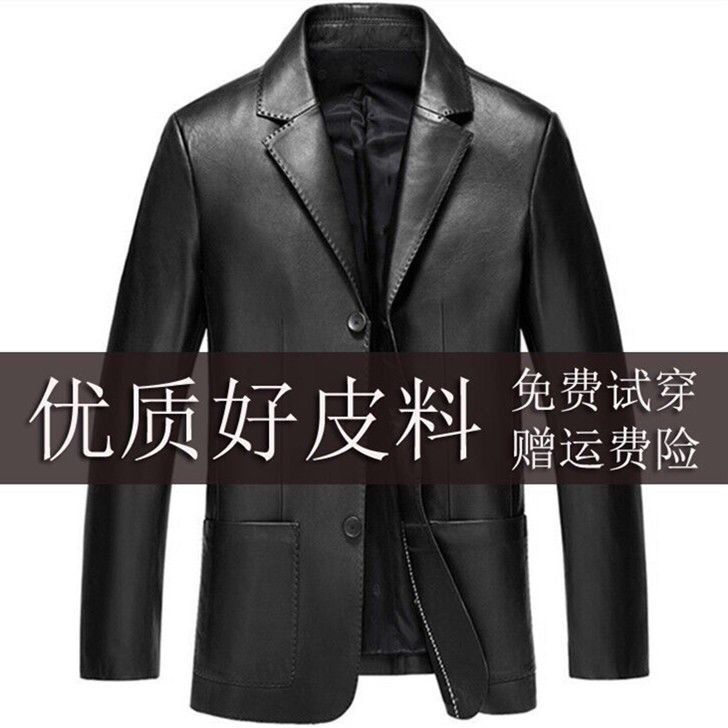 Large size men's leather suit Men's fat suit collar leather jacket Fat fat guy business leather jacket