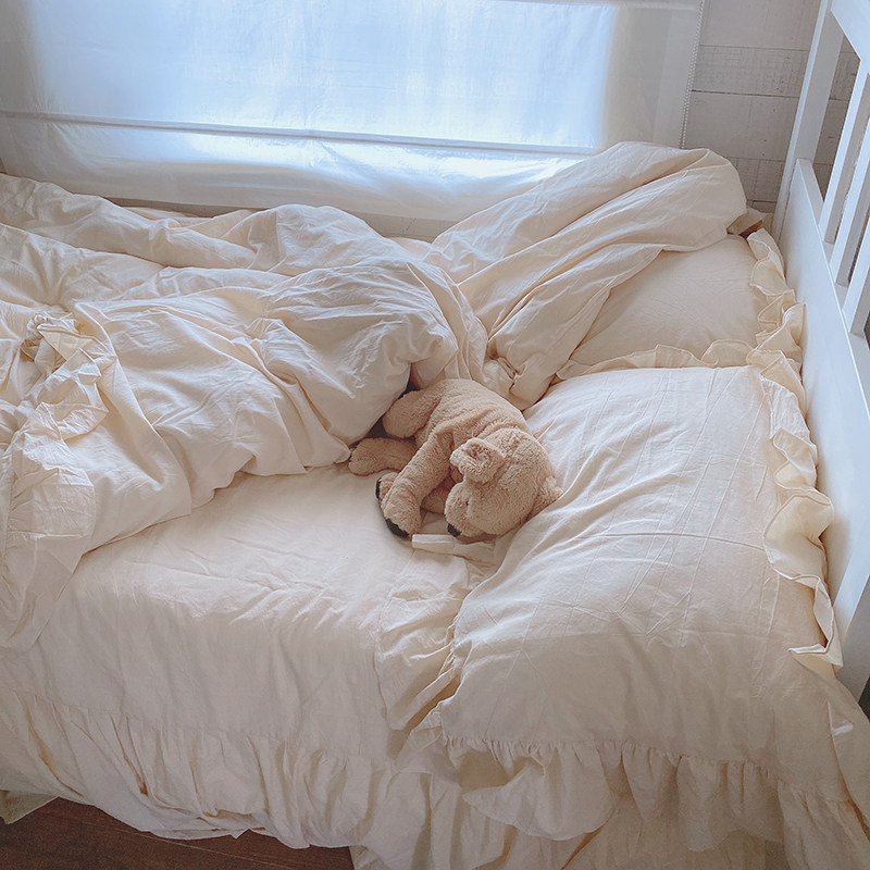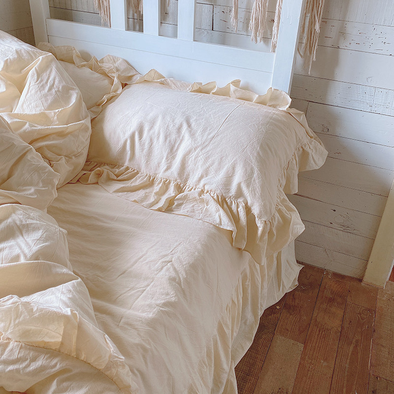 (homestead) gentle milk tea color Nordic minimalist washout cotton all-cotton French style field YU double for four pieces