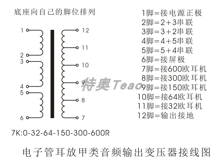 Single-end A-class ear-put output ox Audio transformer 7K:0-32-64-150-300-600R