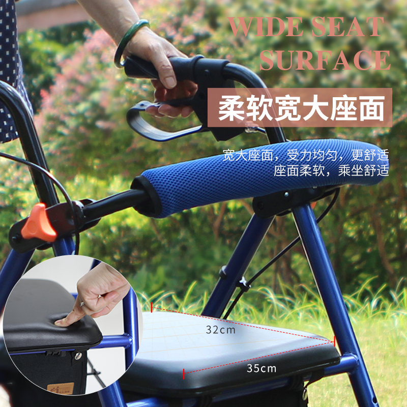 The elderly cart can sit on the elderly hand push with four wheels of walking assistance with seat shopping cart shopping cart can be folded