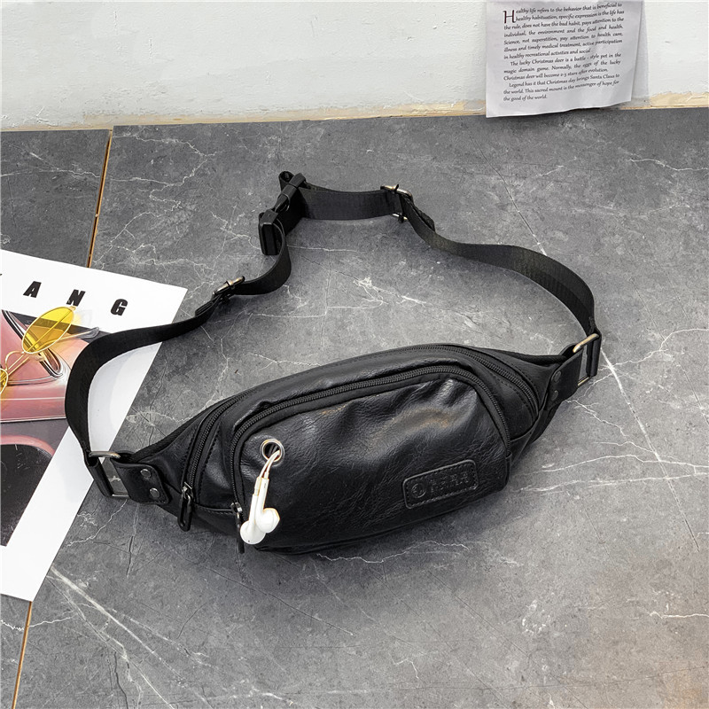 2021 new personality men's bag chest bag leather street tide men's shoulder bag new youth sports small fanny pack satchel