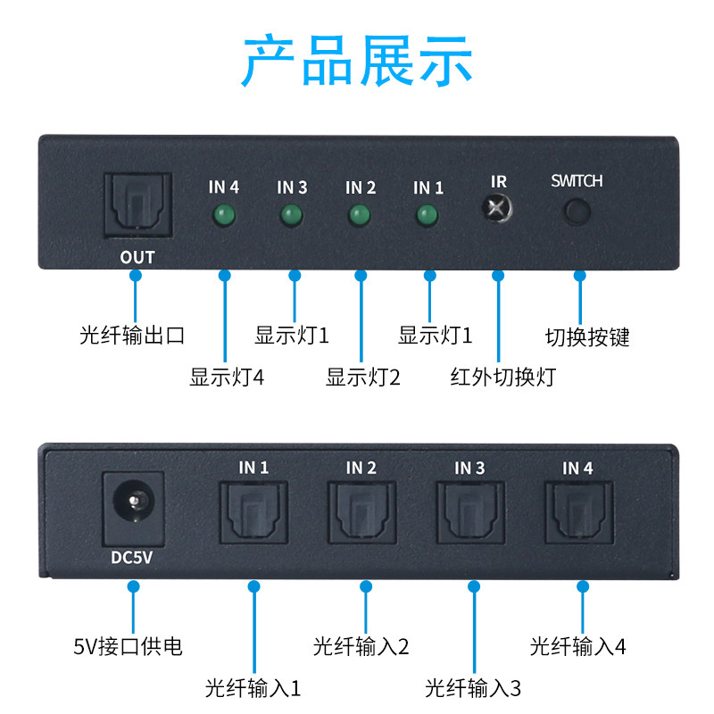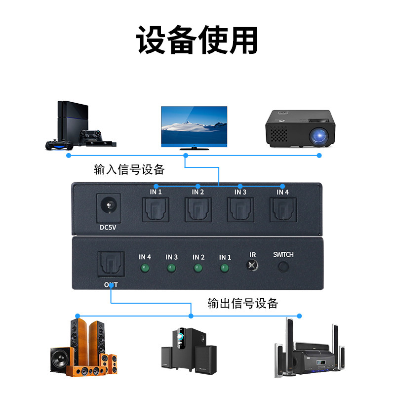 Uting Optical Fiber Audio Switcher 4 in 1 out of SPDIF selector TV Top Box Blu-ray machine with power amplifier