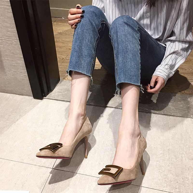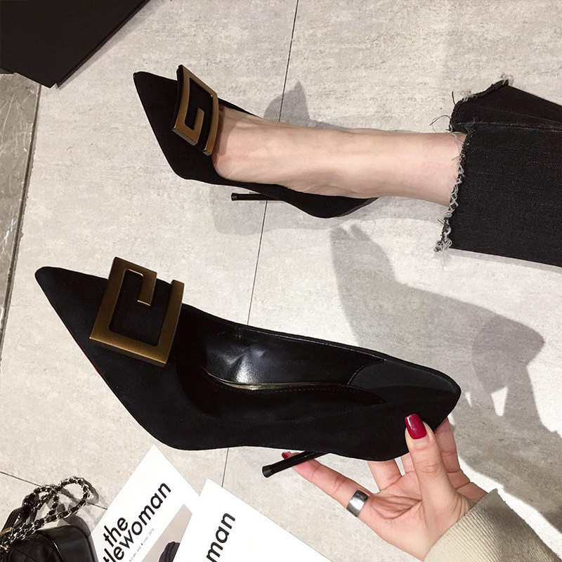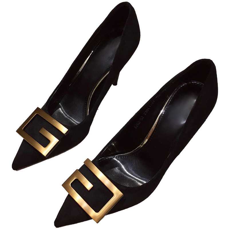 A D Hepburn~2022 Spring and Autumn Versatile Pointed-toe Single Shoes Black French Girls High Heels Female Stiletto Shallow Mouth