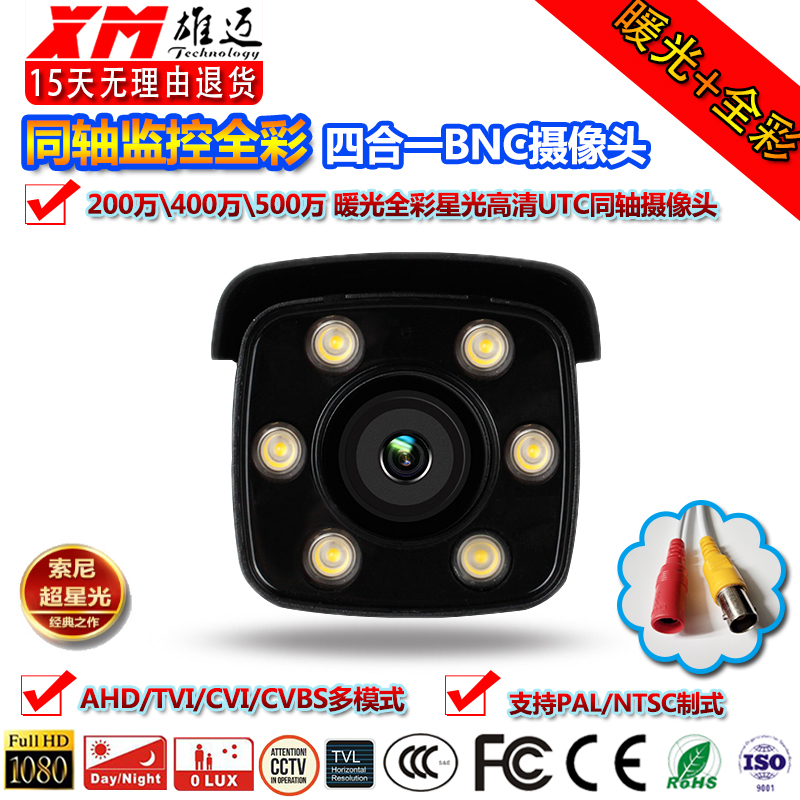 Xiongmai 2 million warm light AHD coaxial TVITVI outdoor metal waterproof UTC surveillance camera day and night full color