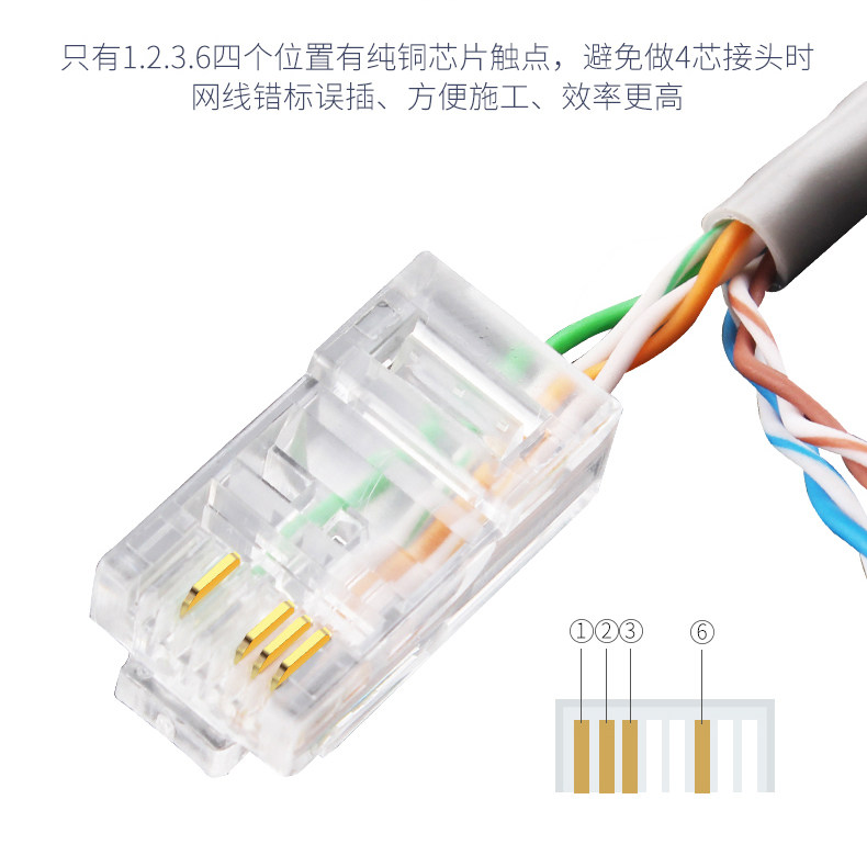 End to 8P4C monitor crystal head superfive type 4 core network route network four-core crystal head gilded mesh route joint