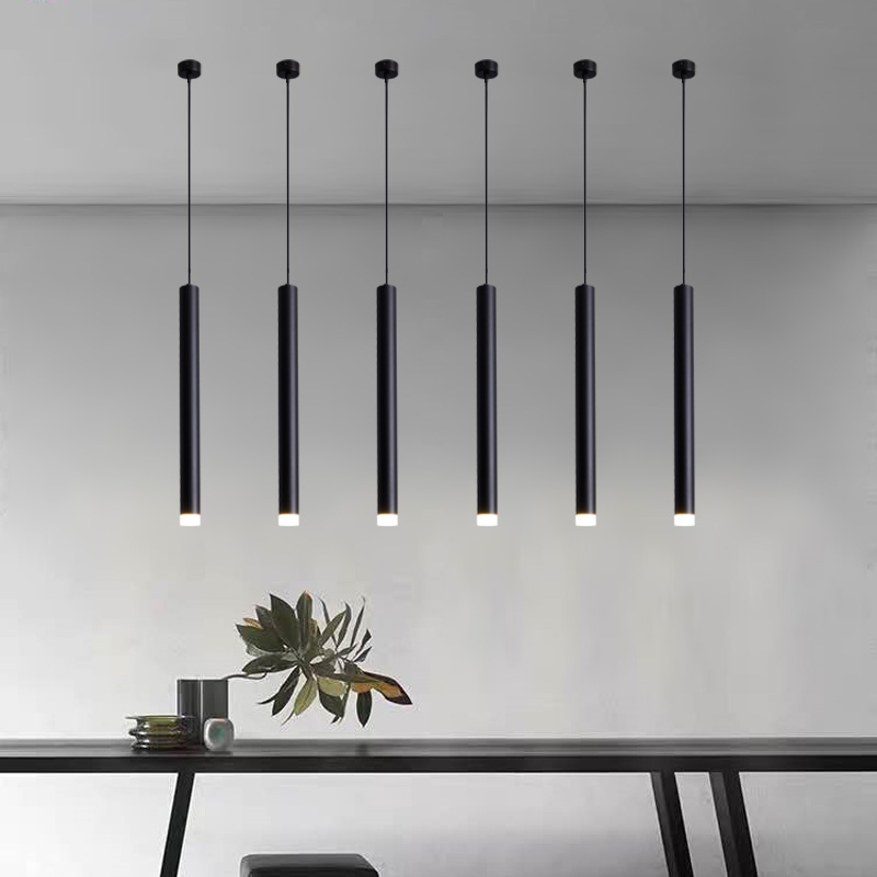 Minimalist dining room slim cylinder cylindrical bar Table Chandelights Hotel Front Desk Creative Personality Round Pipe Golden Single Head Chandelia