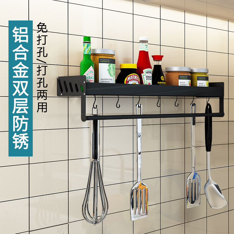 Kitchen shelve wall-mounted seasoning jar rack free of perforated wall hanging frame multifunction condiment oil salt sauce Vinegar Containing shelf