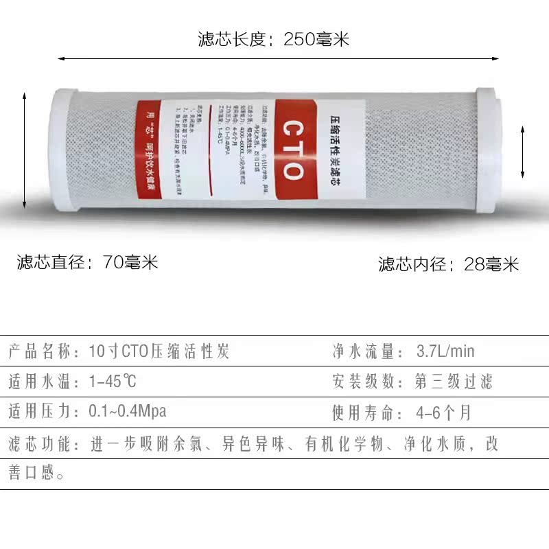 Household water purifier filter element 10 inch front three-stage PP cotton granular activated carbon compressed carbon filter impurity residual chlorine in water