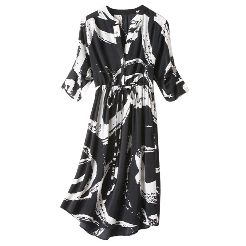 Chiffon skirt 2021 new spring and summer drawstring loose waist to show thin temperament goddess fan broken flower dress small man