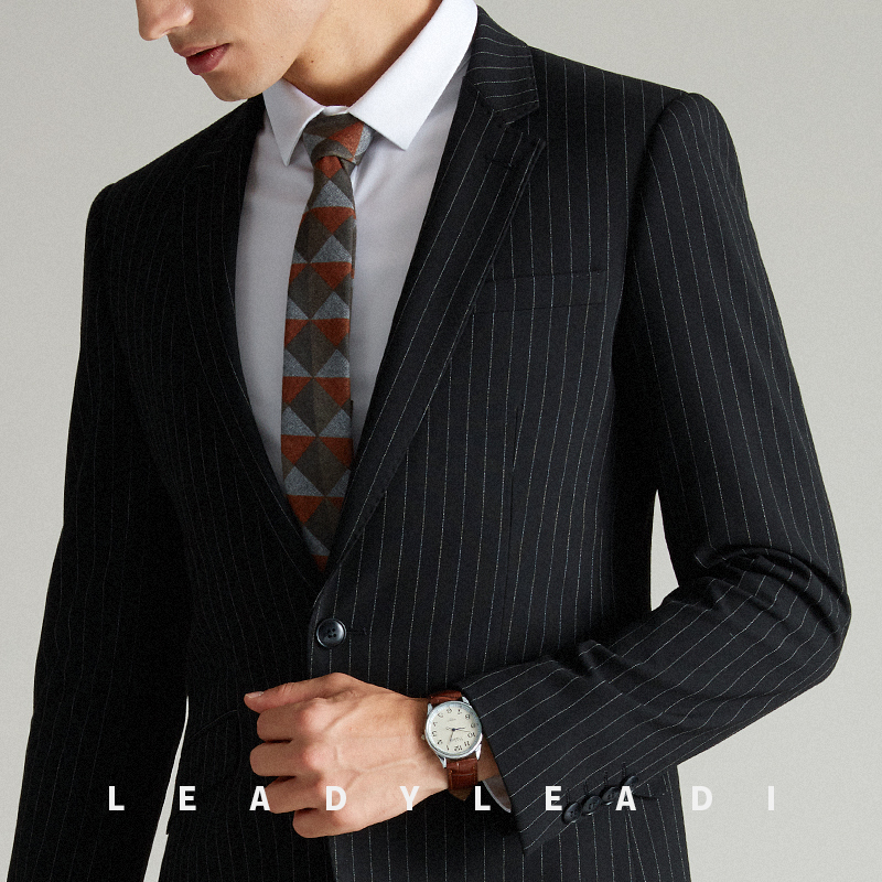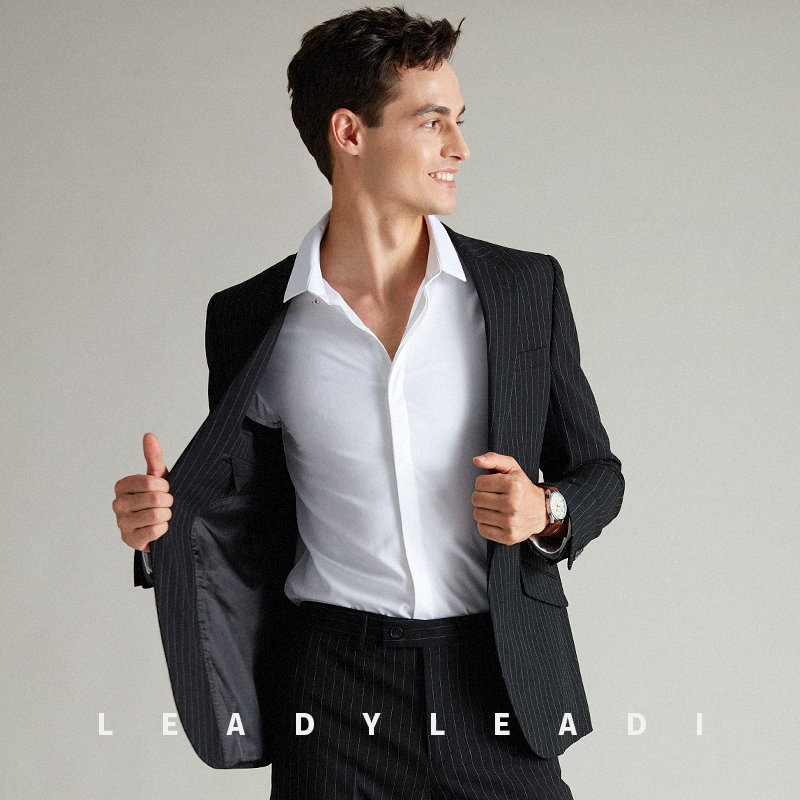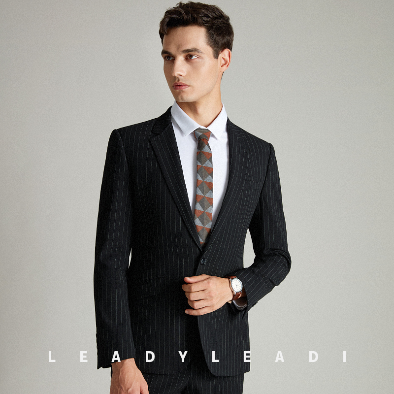 Suit suit Men's black striped business dress Groom wedding dress British style slim suit two-piece suit