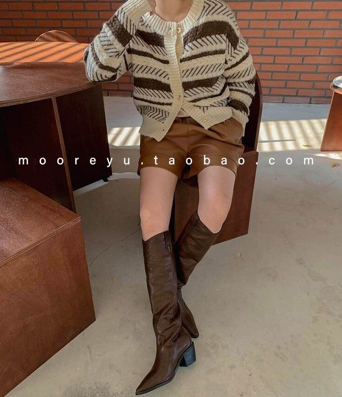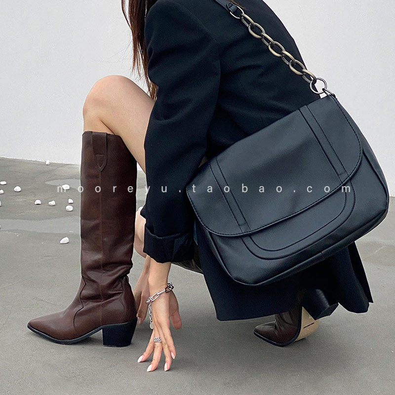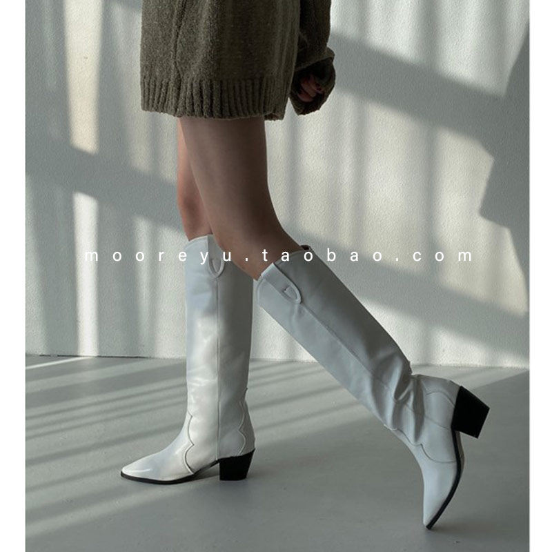 South Korea Dongdaemun women's shoes vintage western boots autumn solid color chunky heel pointed toe boots female versatile