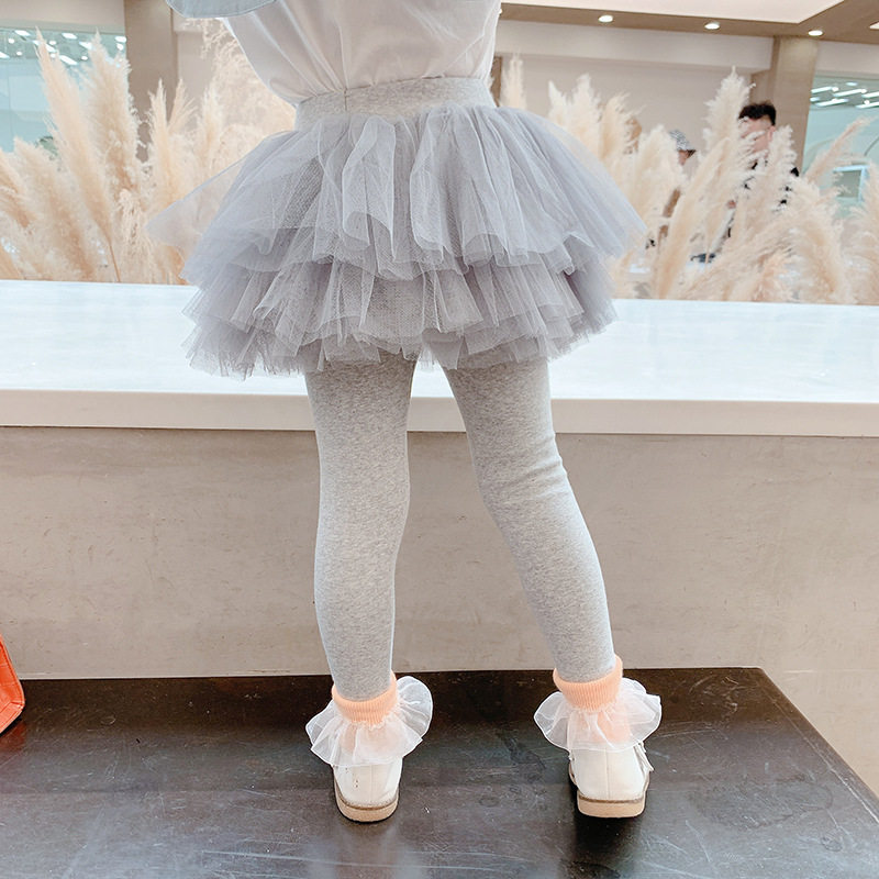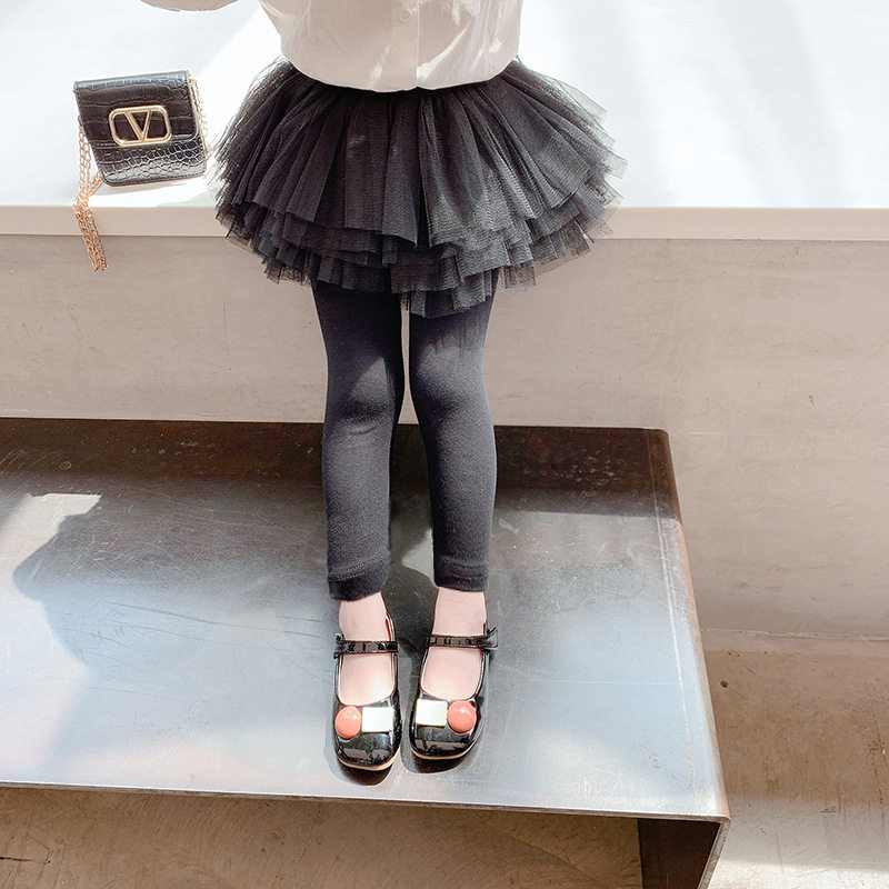 Girl's inside lap pants 2022 spring slim fit fake two dress pants spring dress splicing mesh veil little girl fluffy skirt outside