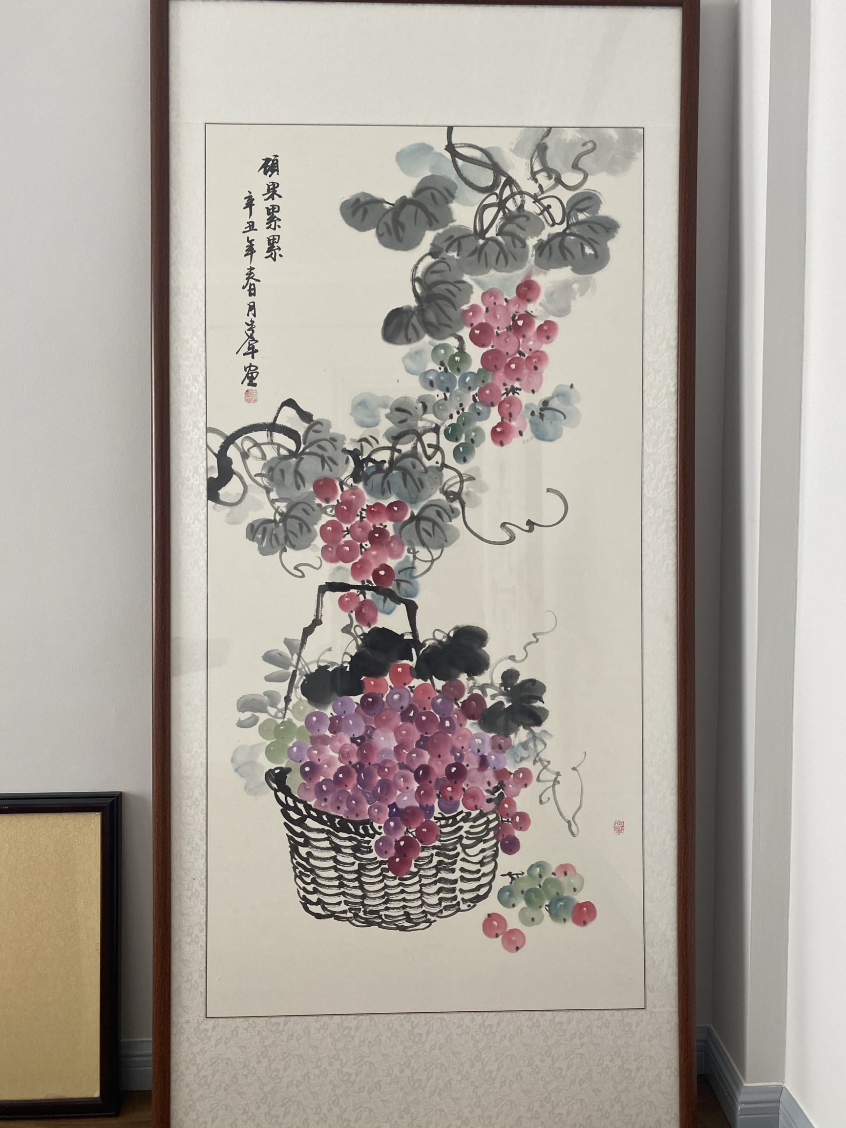 Chinese painting flowers and bird painting room porch office hanging painting Chinese decoration hand painted ink painting grapes are fruitful
