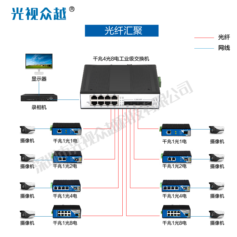 Industrial grade 4 - light 8 power switch Gigabit four - light eight power convergence SFP fiber extension line DIN rail protection