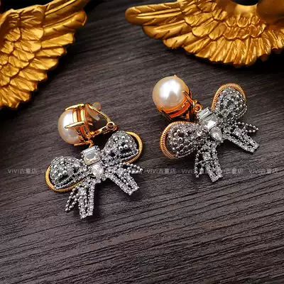(temperament style)Guo Bi Ting with the same bow crystal diamond wedding ear clip hole-free earring ear needle female socialite
