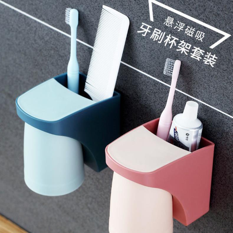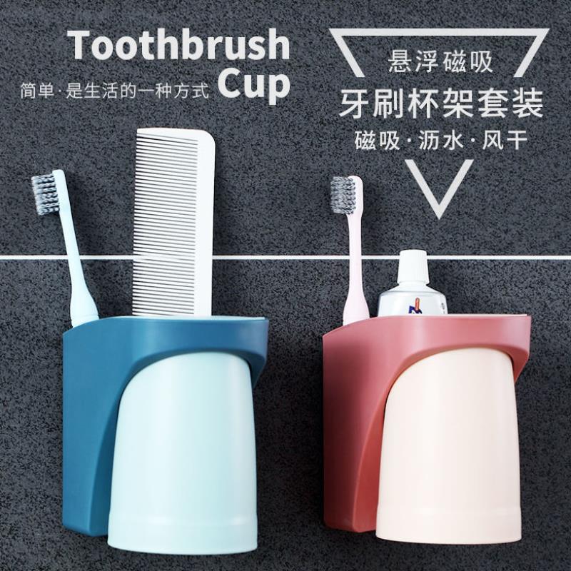 Magnetic mouthwash cup set household wall-mounted toothbrush cup family of three tooth jar couples combination family wall-mounted