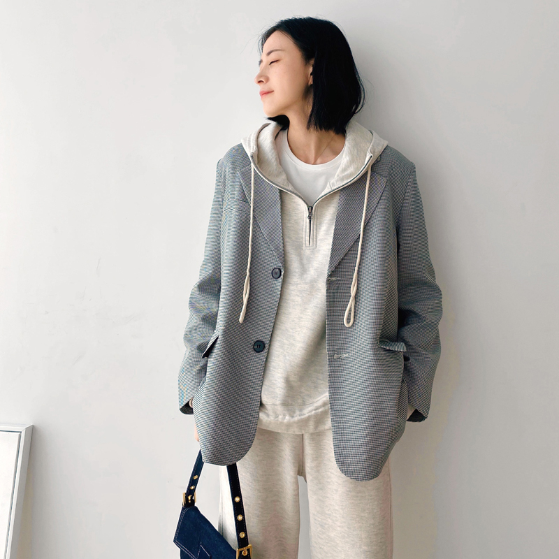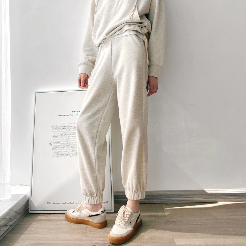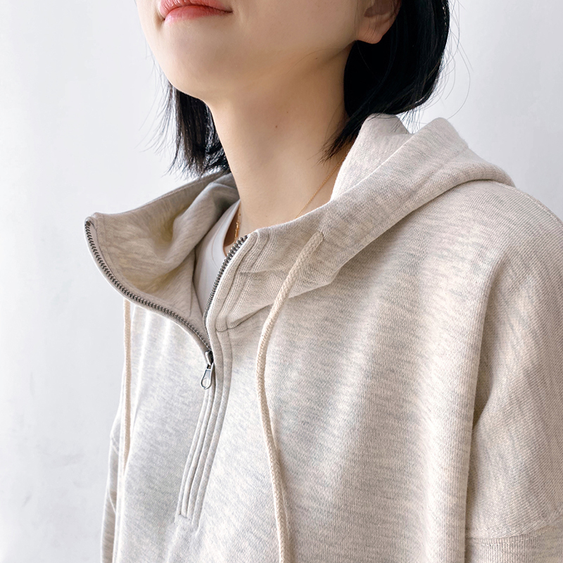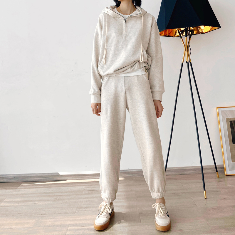 Sports and leisure suit women's autumn and winter retro neutral style loose and thin hooded zipper pure cotton pullover sweater and trousers