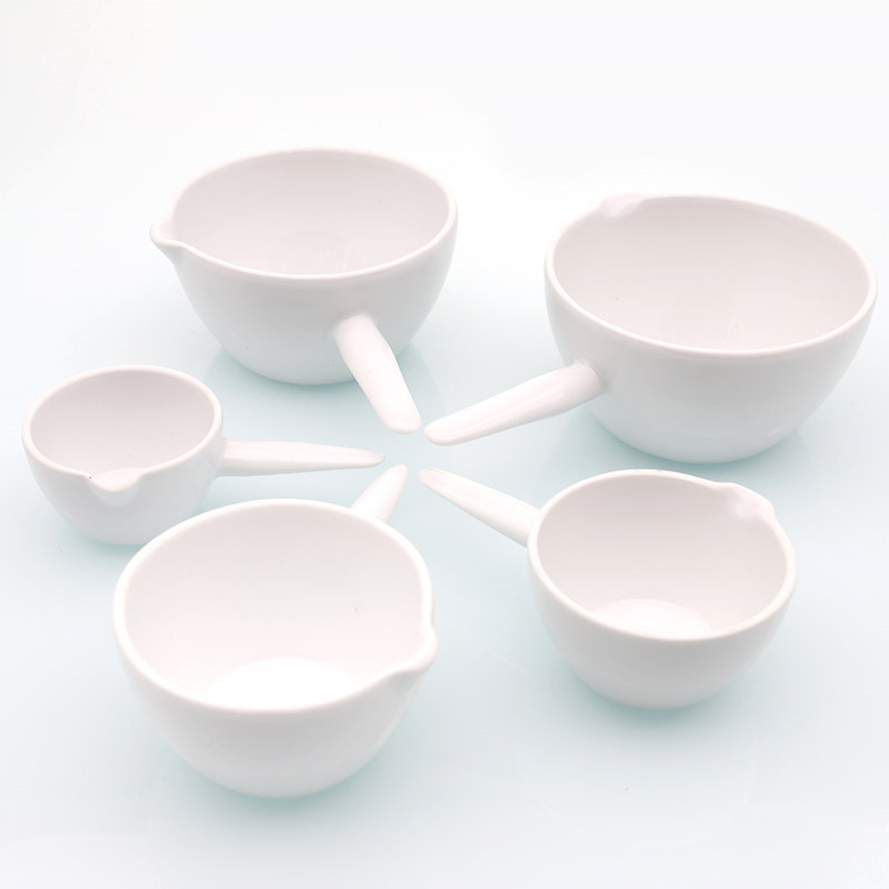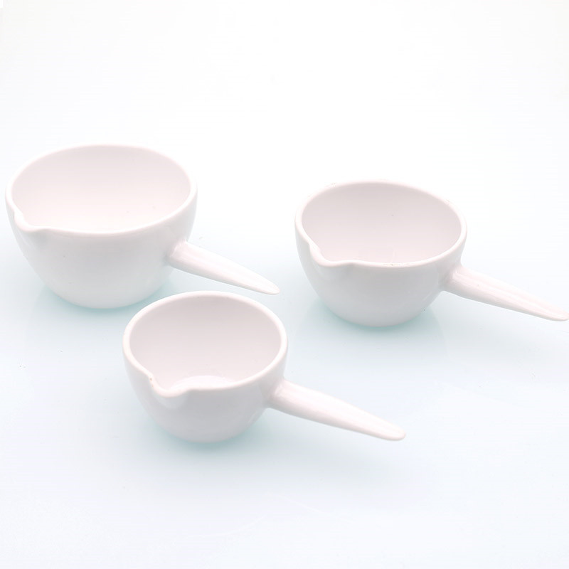 Ceramic handle dish with mouth evaporating dish flat bottom 30 125 100ml laboratory special porcelain thickened high temperature resistance
