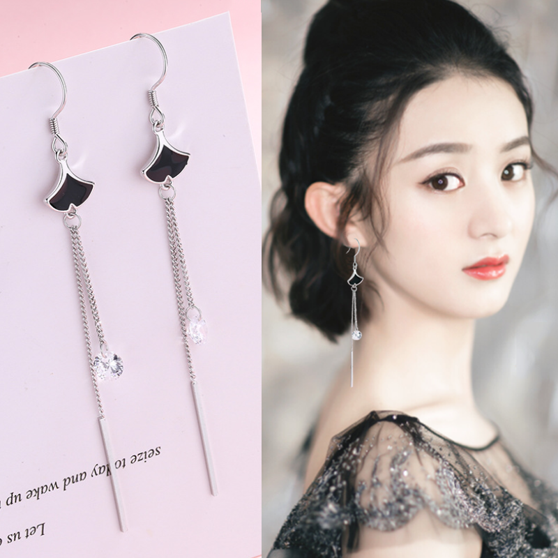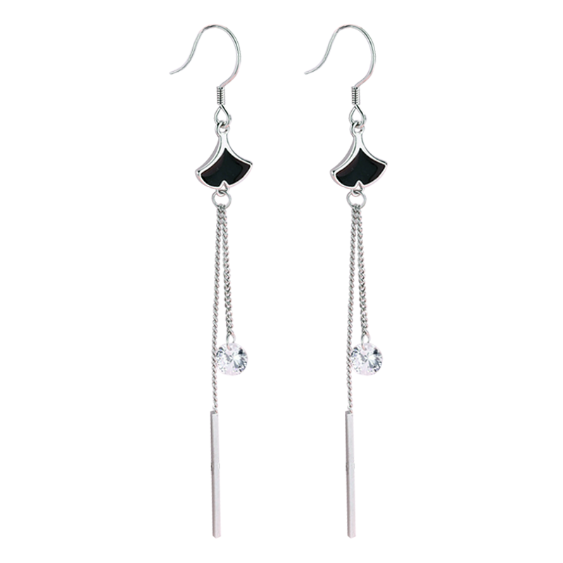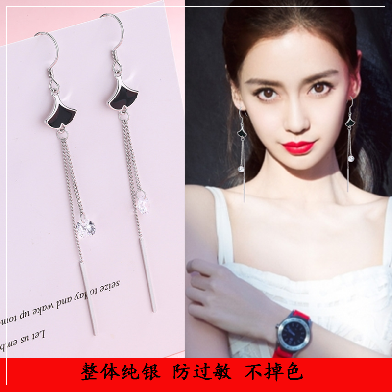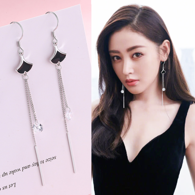 Sector Earrings Women's pure silver Long version of the Korean temperament 2021 The new wave 100 hitch a minimalist ear ornament