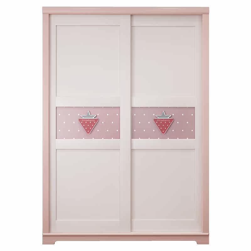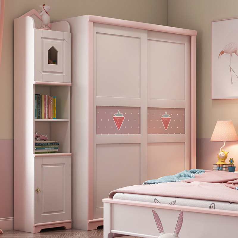 Strawberry Children's Wardrobe Sliding Door Solid Wood Wardrobe Modern Simple Girl Room Bedroom Cartoon Princess Pink Wardrobe