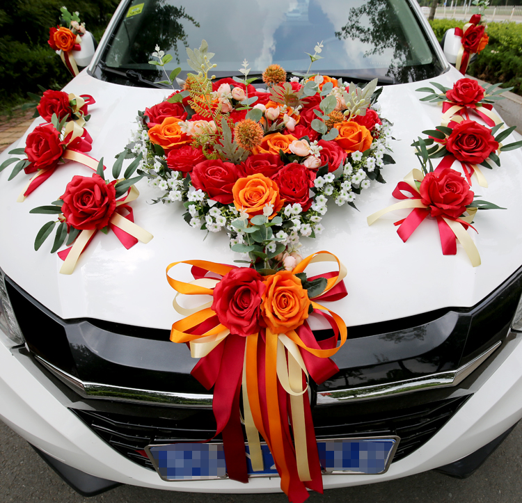Wedding car flower decoration Simulation wedding car pull flower wedding car float head Decoration wedding team deputy car flower main car flower