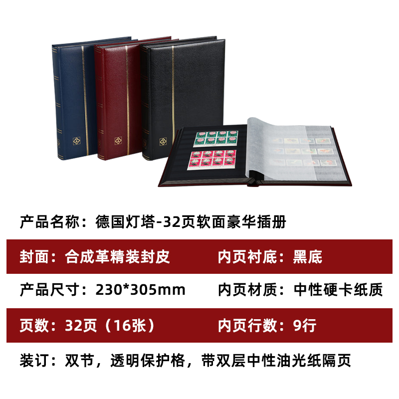 lighthouse German Lighthouse originally imported 32 pages 16 black-solid double-sided soft-sided luxury collection collection of large-capacity stamp collections for a new paper-based empty book
