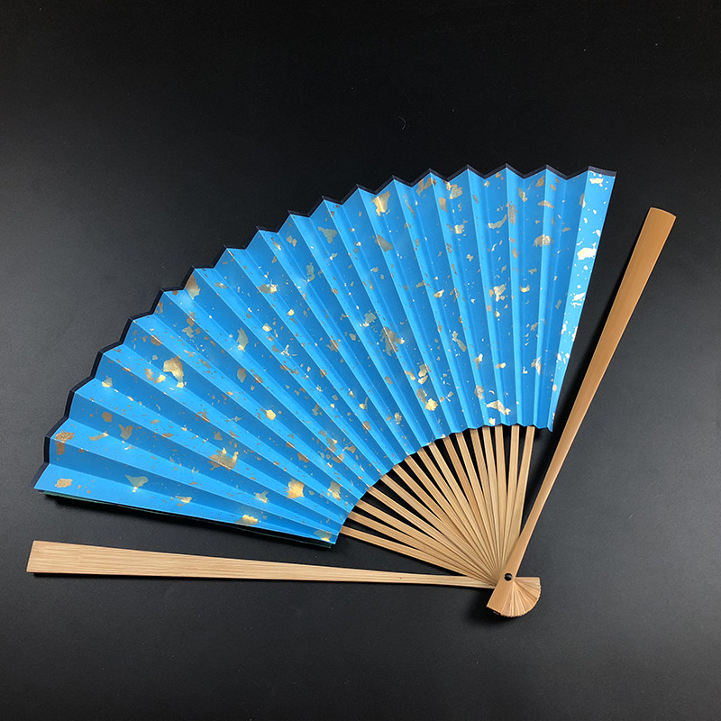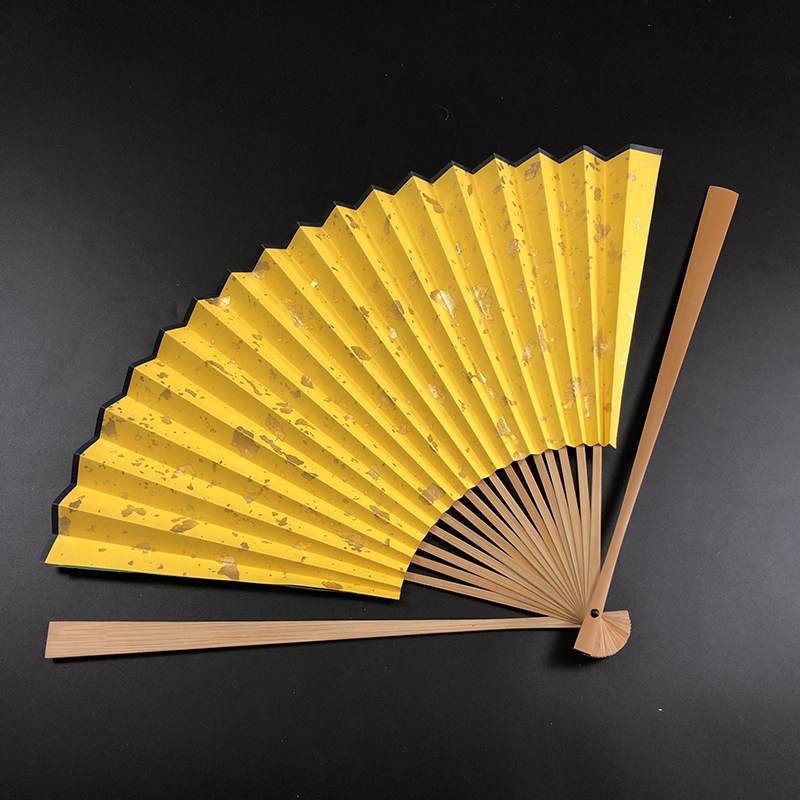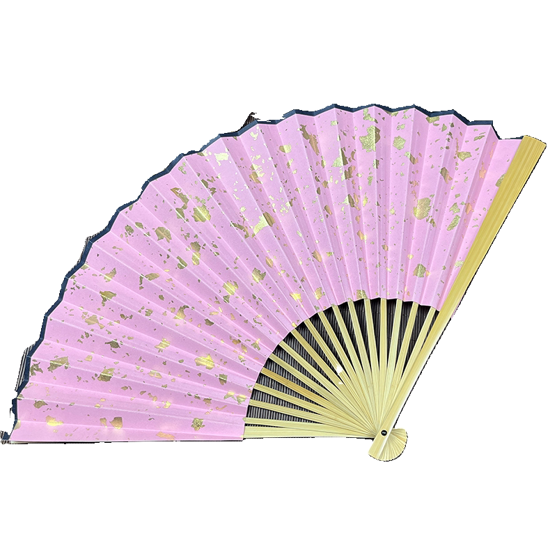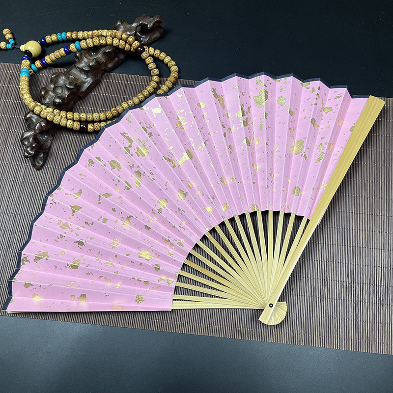 Antique April with the same style of dark green pink color sprinkled with real gold foil jade bamboo folding fan Hanfu performance Wenwan folding fan