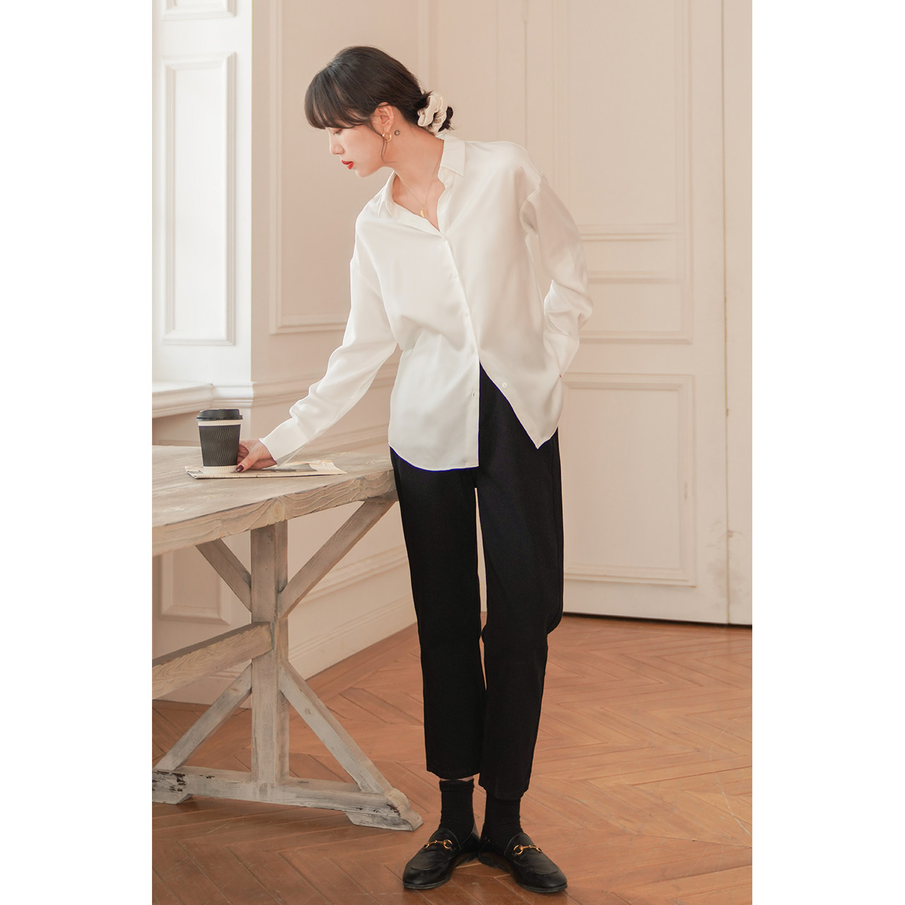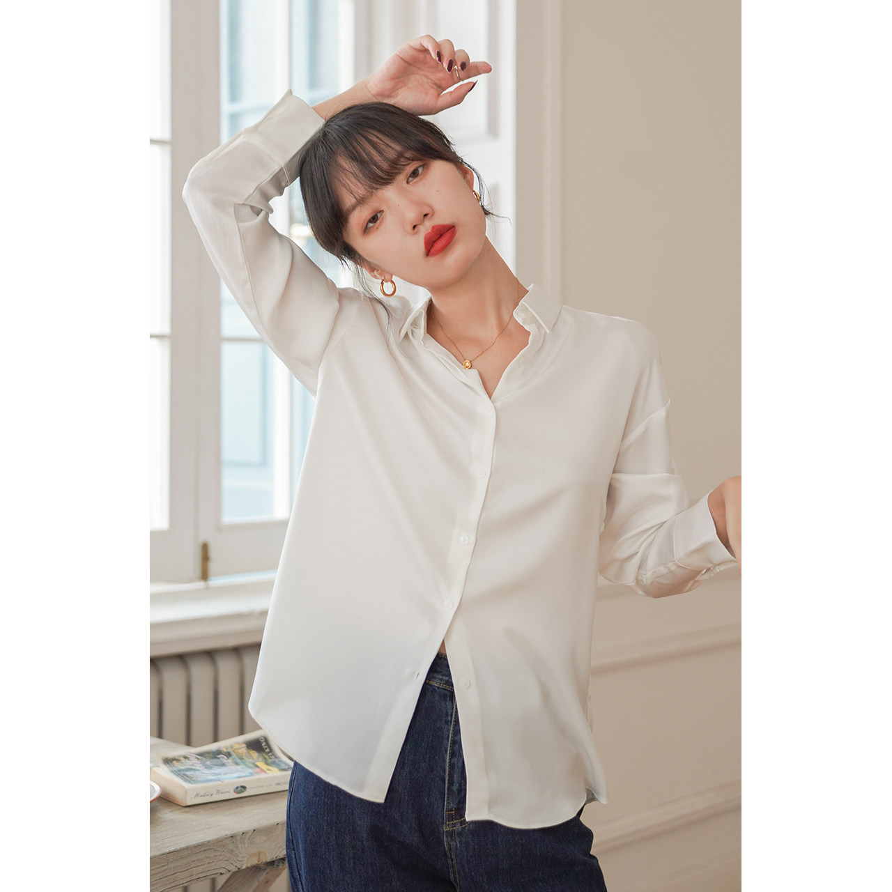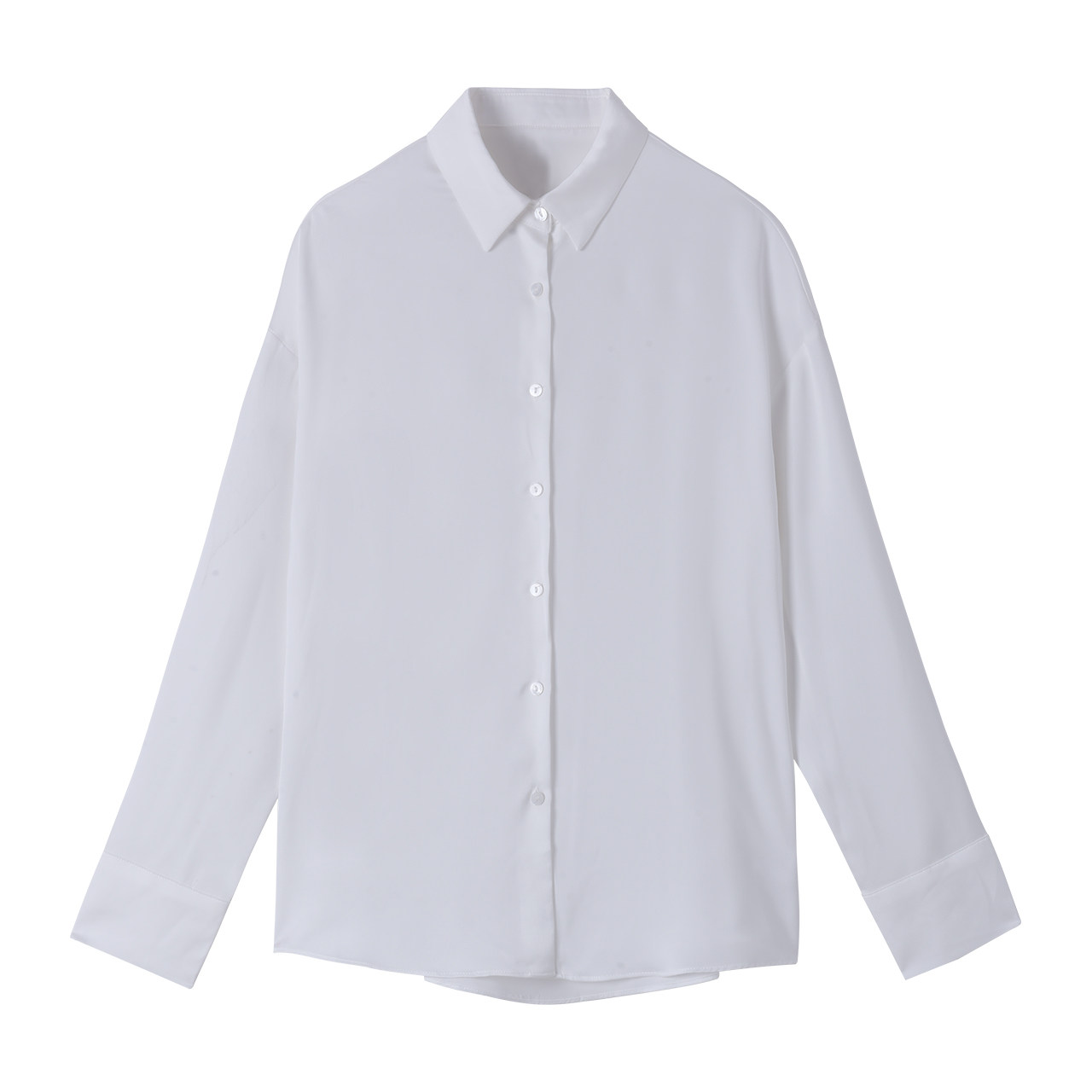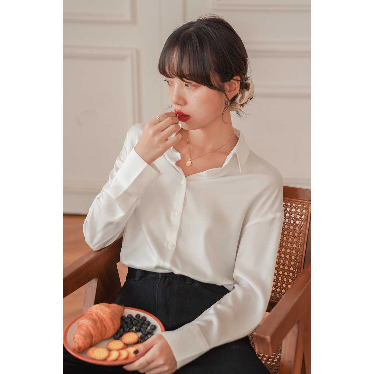 Fasilu silk satin white shirt women's autumn new loose hanging long-sleeved French temperament professional top