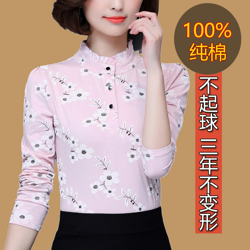 Autumn clothes woman 2022 new half-height collars undershirt autumn winter middle aged mother pure cotton blouse full cotton long sleeve T-shirt
