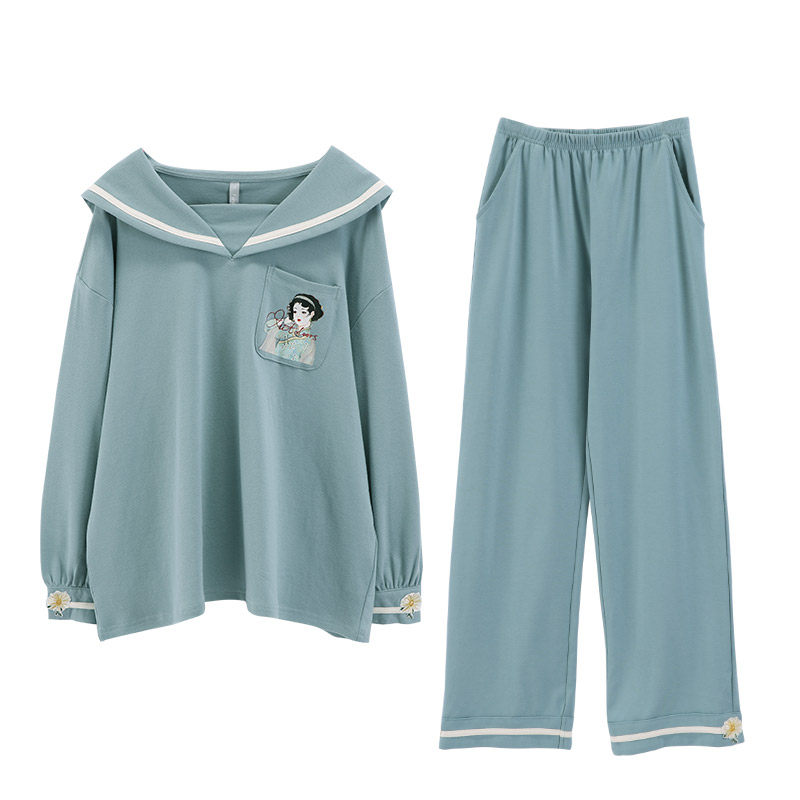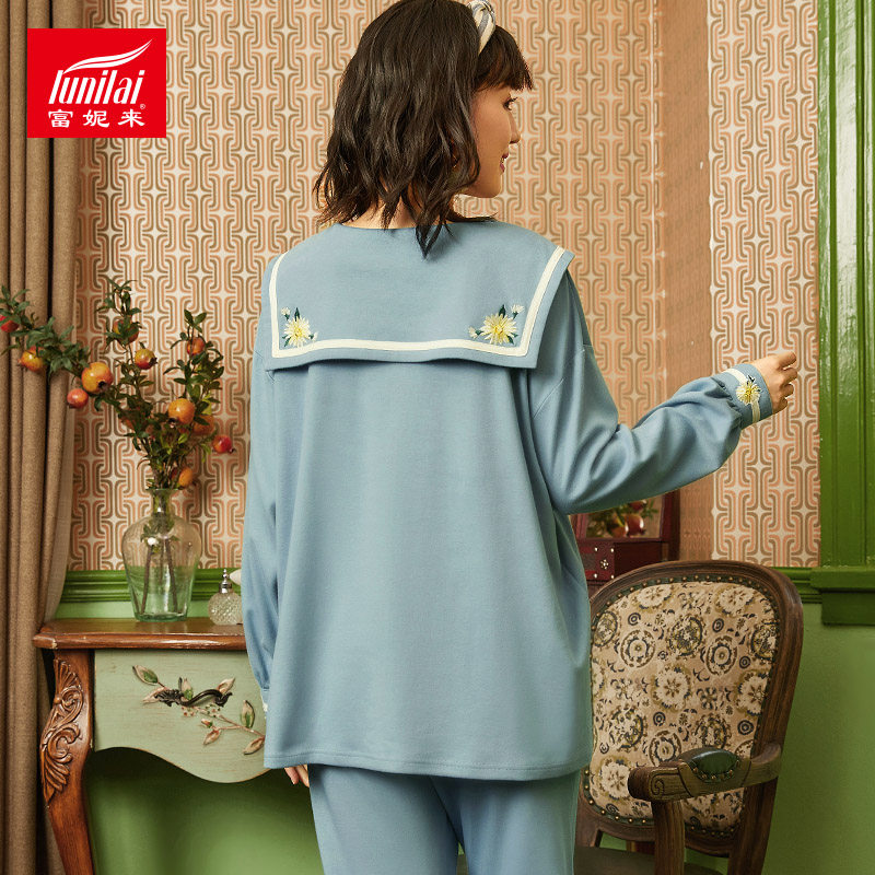 Funi came to Guoxian famous cotton-leaning home suit loose leisure and sweet navy collar header sleepy clothes spring and autumn