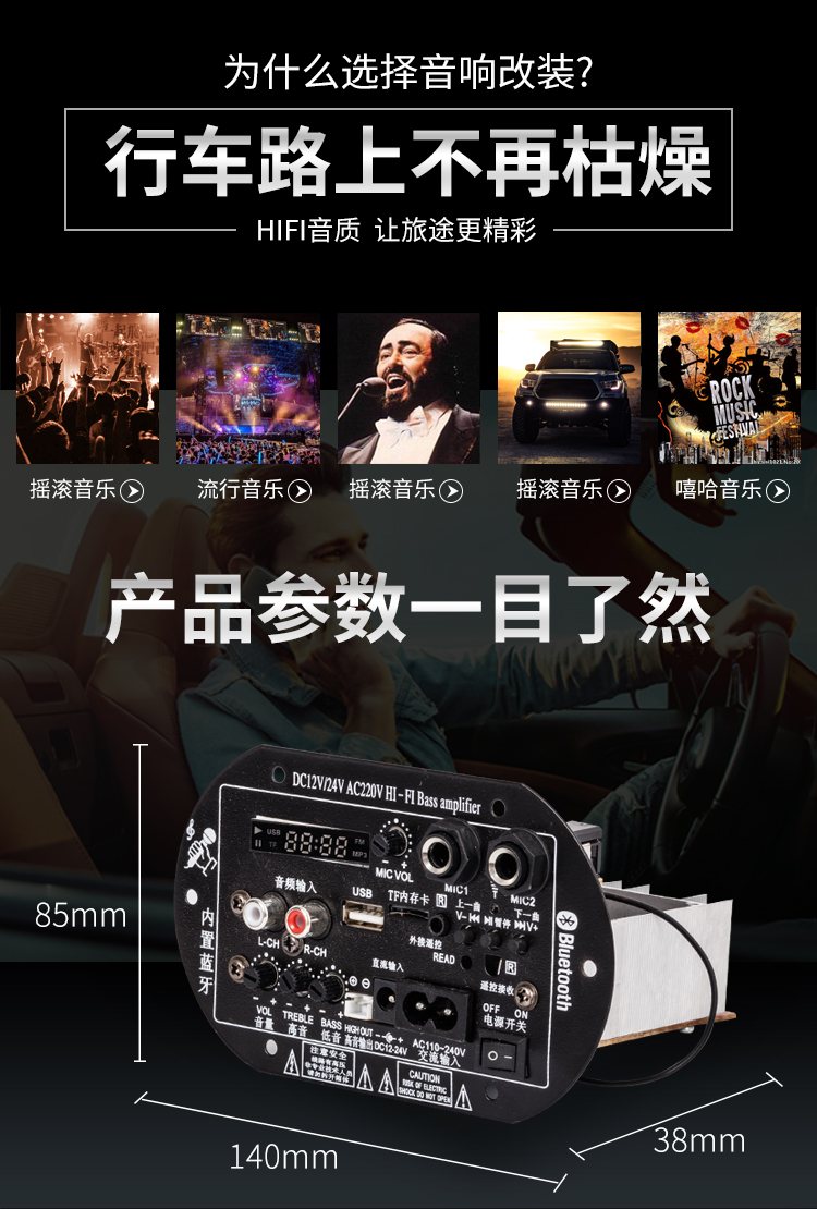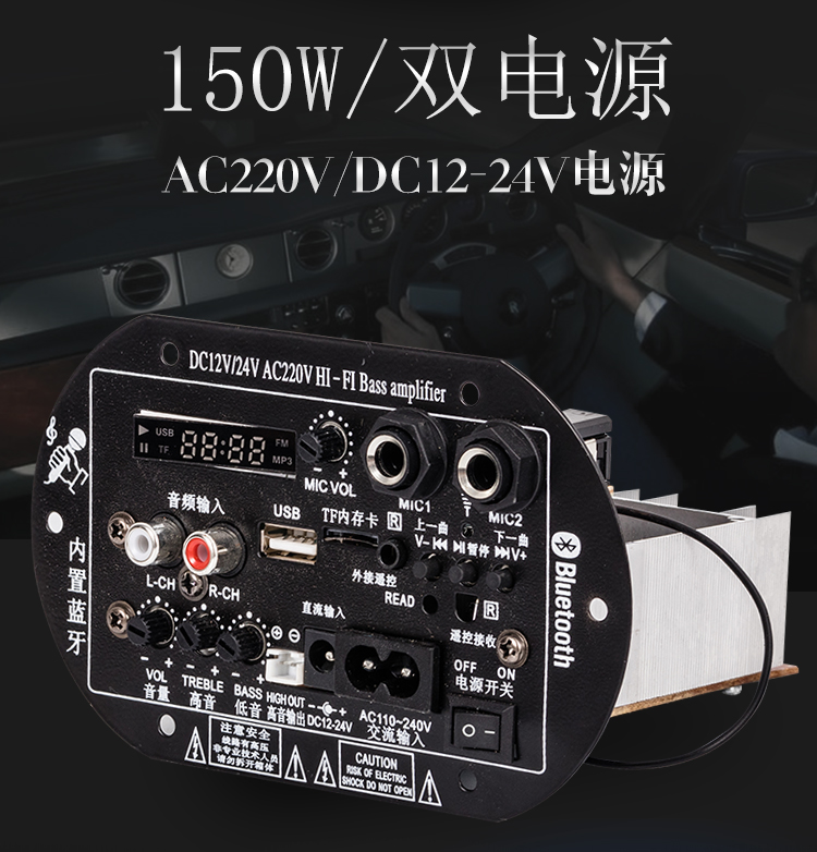 150W220V Bluetooth display high-power amplifier board 24V car subwoofer core speaker circuit motherboard S