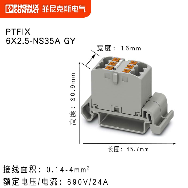 2 5 square terminal block Phoenix terminal block PTFIX 6X2 5-NS35A single piece 3273132